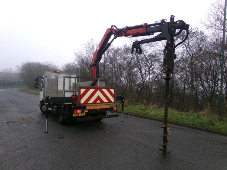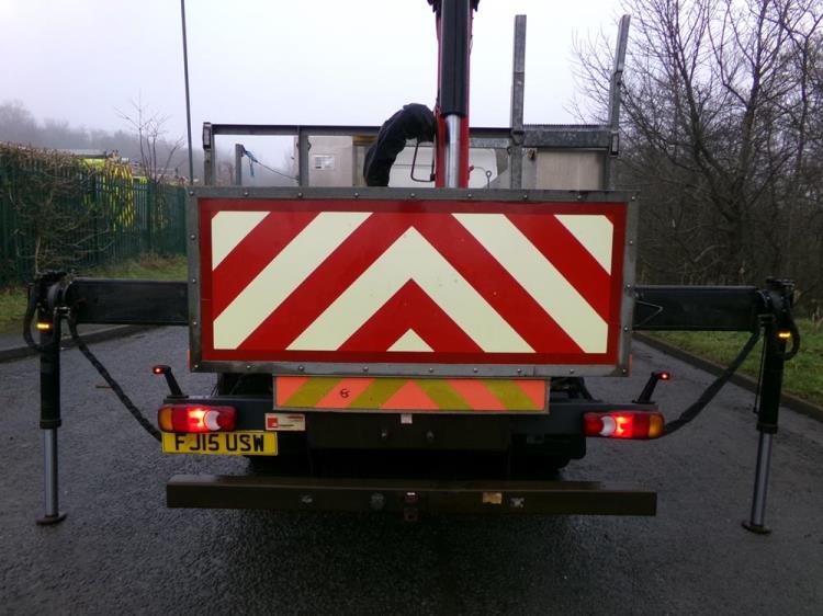 9.3 TON SWB FLAT BED WITH HMF 735 CRANE WITH 3 EXTENSIONS AND AUGER. MANUAL. EURO 6. 117,372 KMS. DIRECT FROM BT.